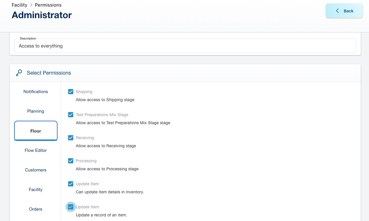 Item Verification: Once the necessary checks on an item are completed, users with "update item" permissions can update its status.