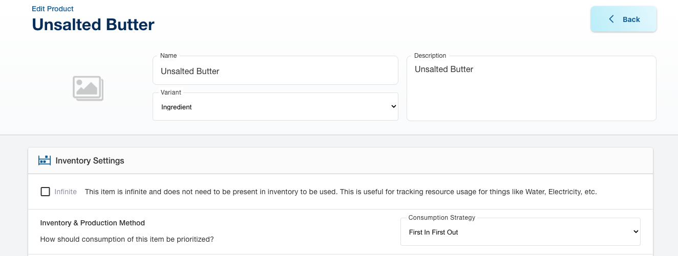 - Access Inventory Settings: Within the item's details, locate the Inventory Settings section. Here, you'll find the Inventory & Production Method configuration.