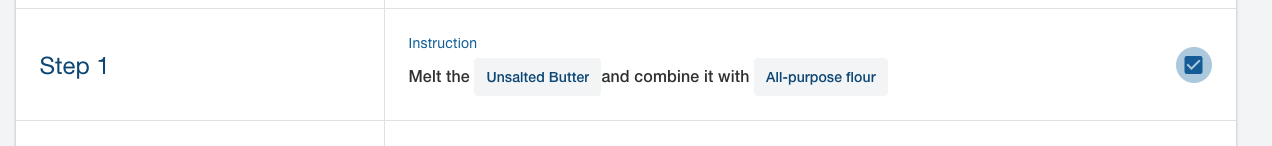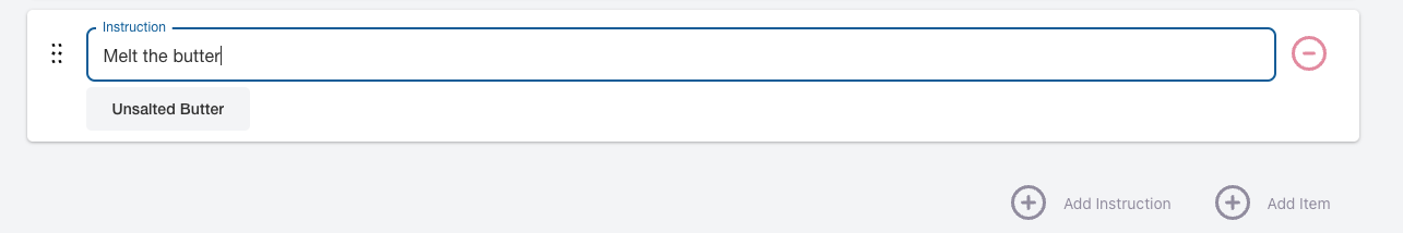 Enter Details: Type in the instruction field. The system will suggest ingredients or items mentioned in your instructions for easy reference.