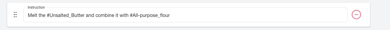 Organize Instructions: You can drag and position the instruction where it fits best among the steps or ingredients.