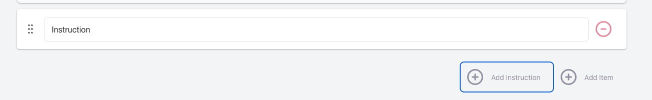 Add Instruction: Below the listed ingredients, click the "Add Instruction" button to introduce a new step.