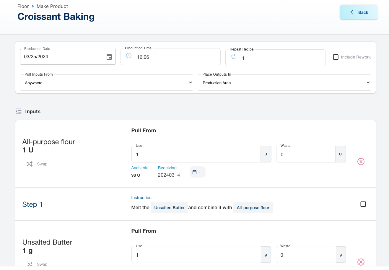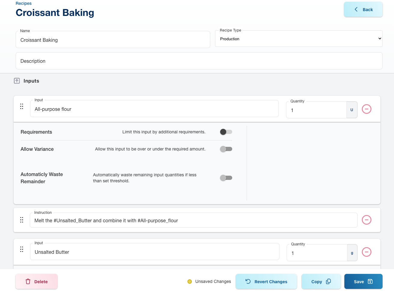 This feature enhances clarity in the production process by allowing the addition of detailed instructions or steps to your recipes, ensuring that team members have clear guidance.