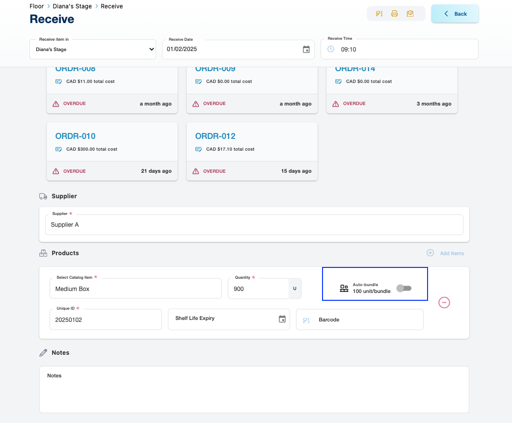 Finalize Receipt: If the bundle preview is accurate, proceed by clicking receive. The items will be logged into your inventory as bundled units, simplifying subsequent inventory handling and tracking.