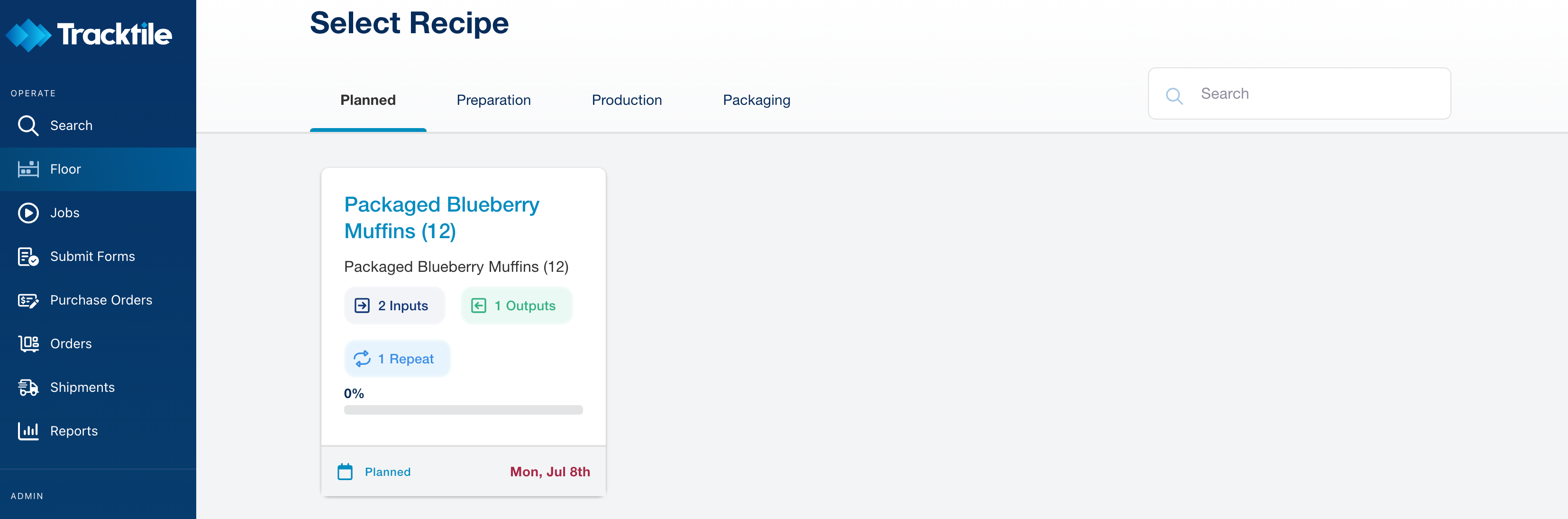 View Scheduled Recipes: Workers access planned recipes through Floor > Make Product > Planned tab.