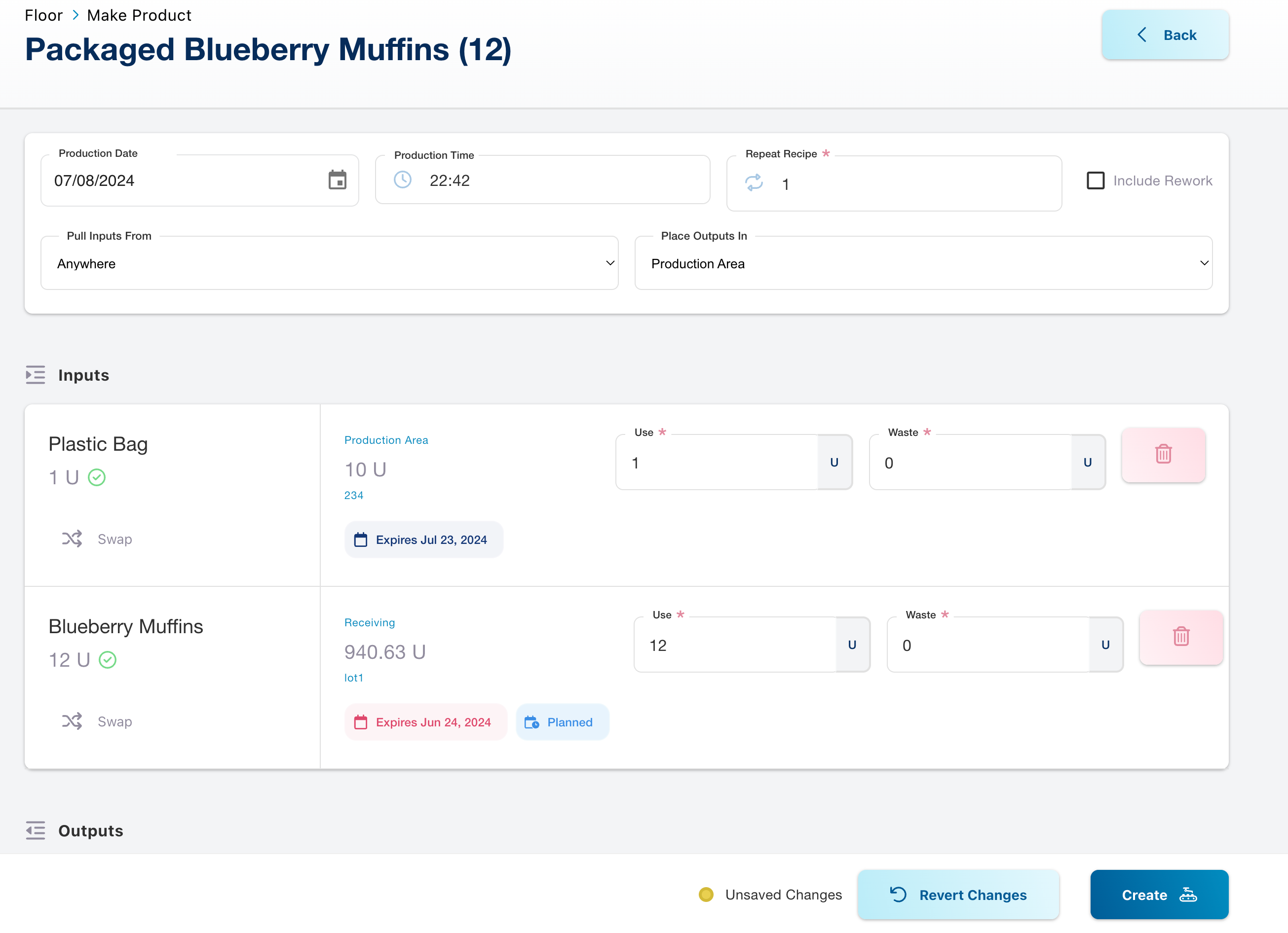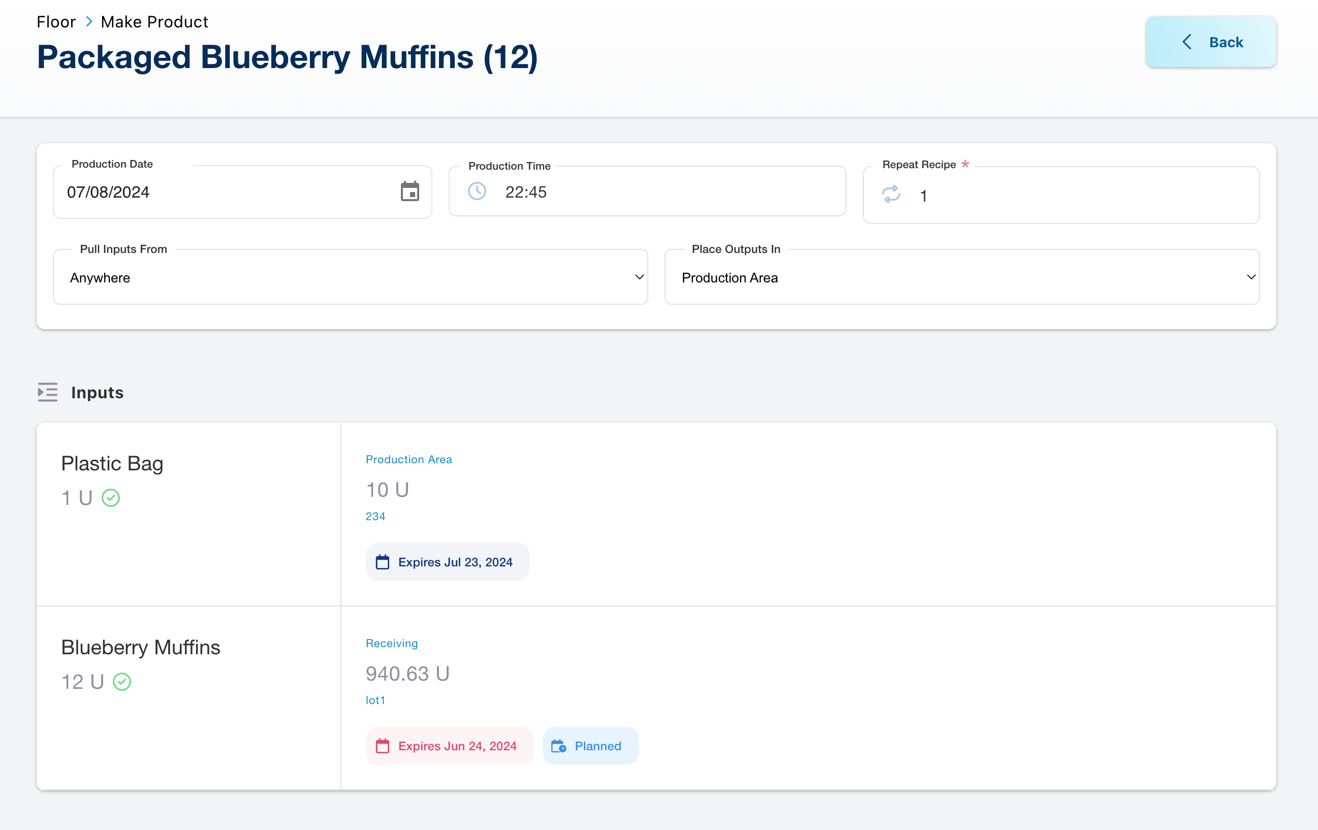 - Inputs not pre-planned may be auto-filled based on the inventory strategy if auto-fill is enabled in Facility Settings.
