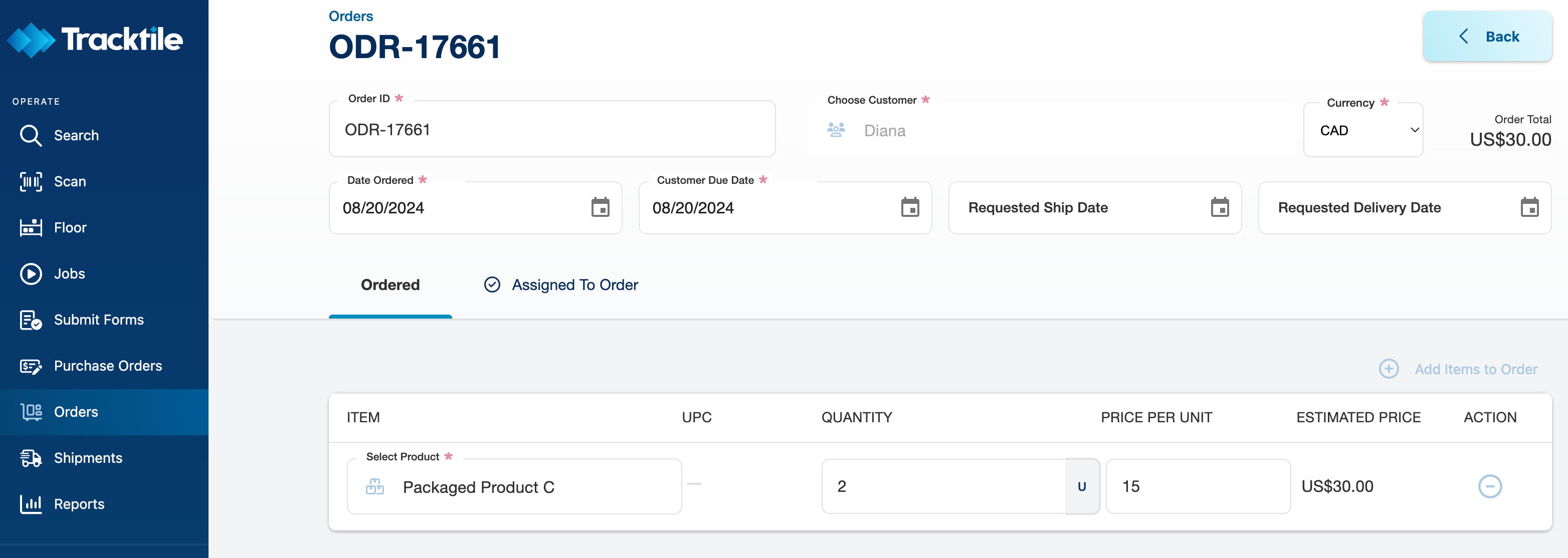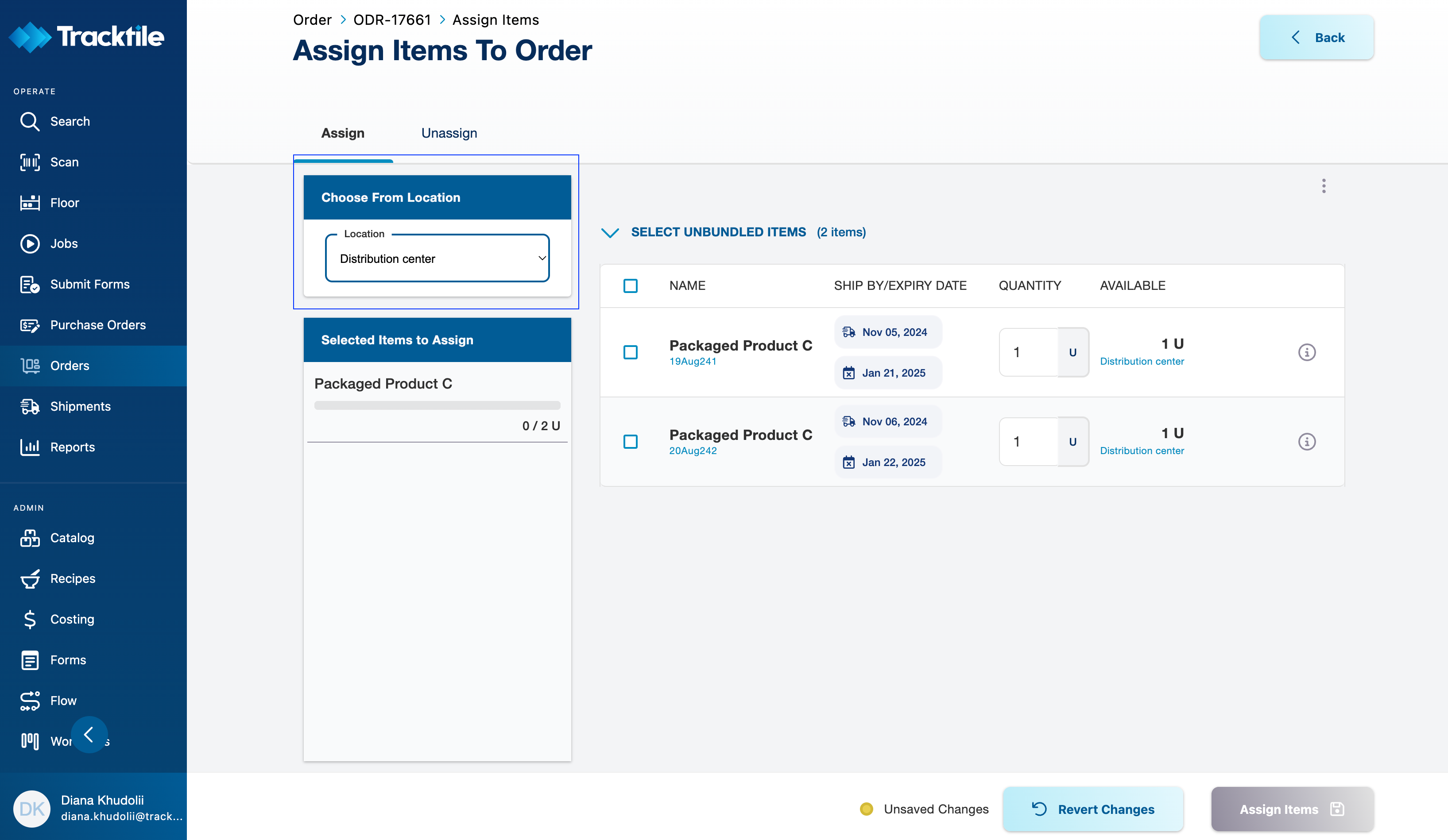 - Click âassigned to orderâ followed by âmanage itemsâ to start allocating inventory.