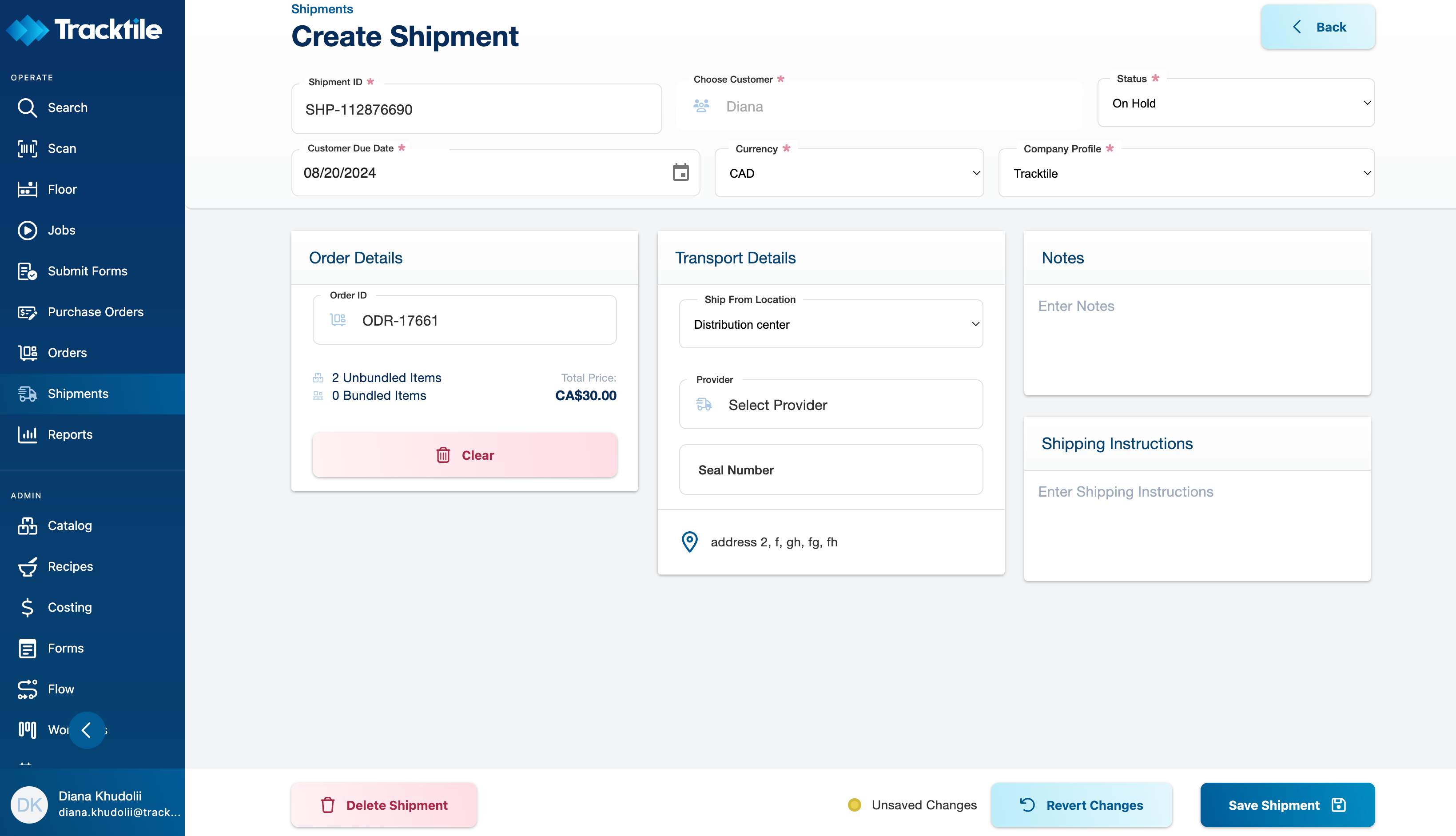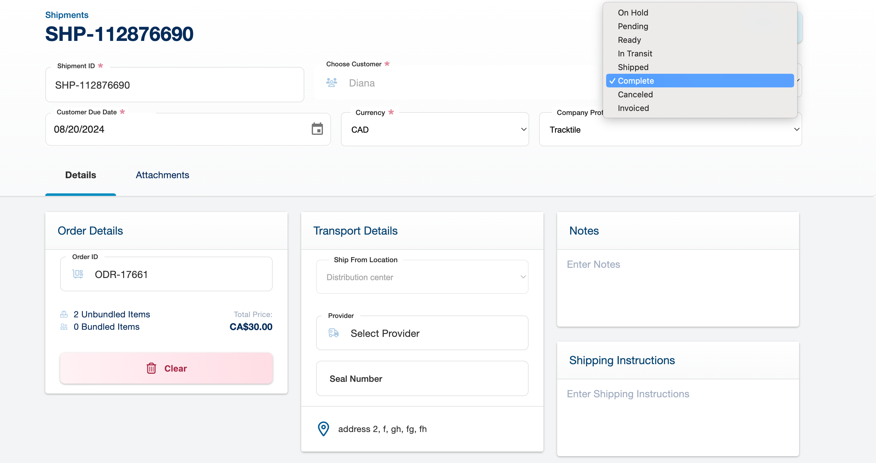 - Either link the order to a new shipment or create a shipment directly from the order details.