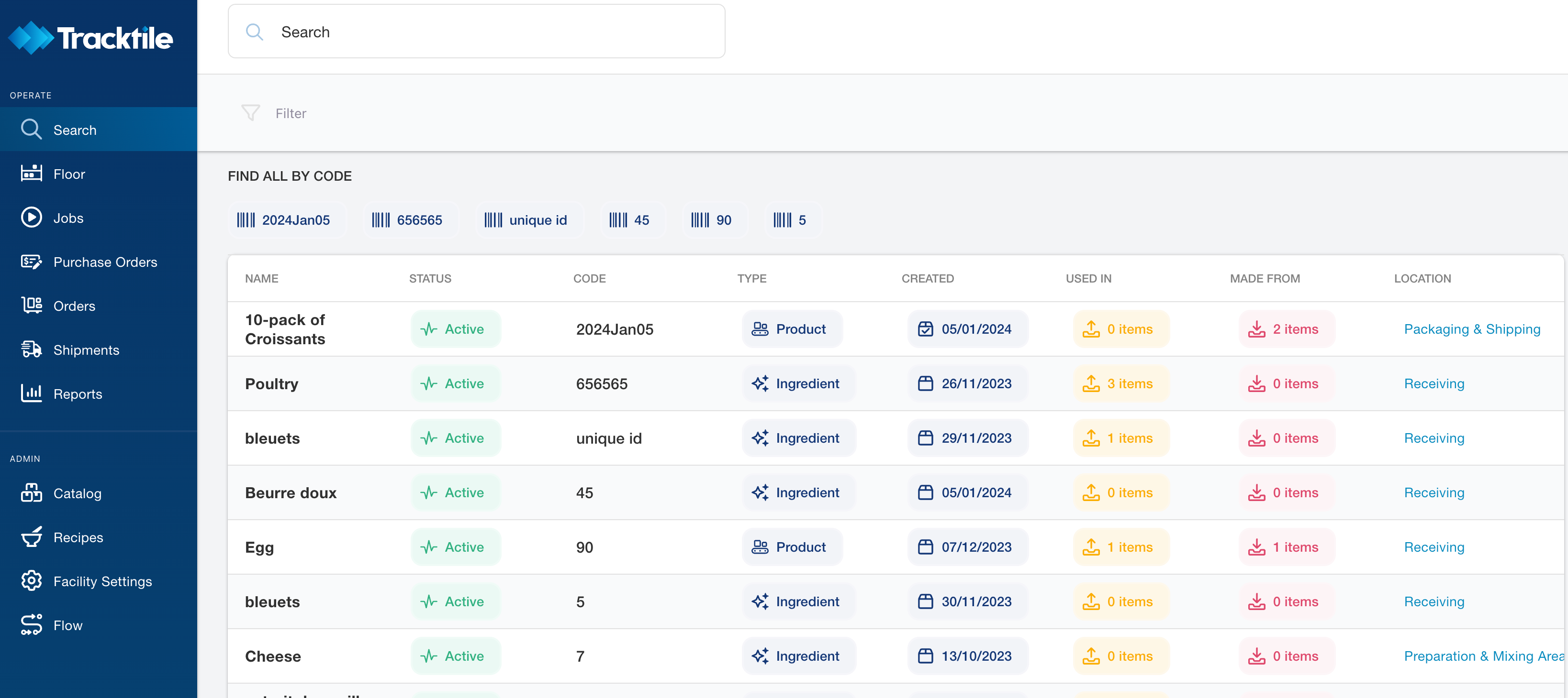 - Enter the Unique ID, LOT Code or Item Name you want to find.