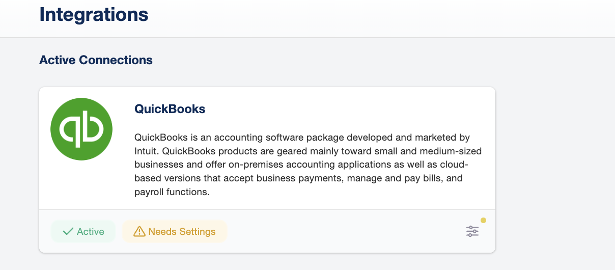 - Once connected, you'll see a confirmation and the QuickBooks configuration options
