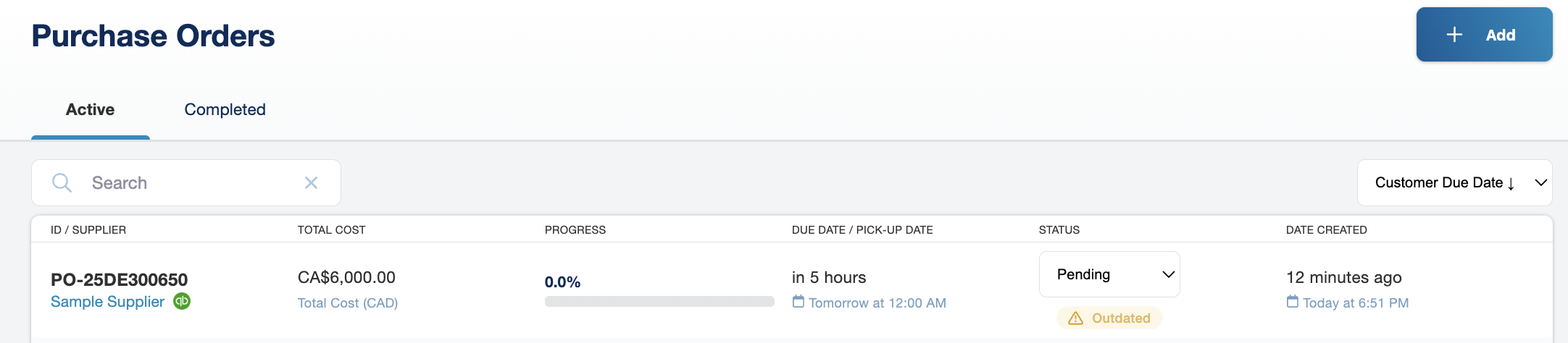 - PO displays "Synced" status badge