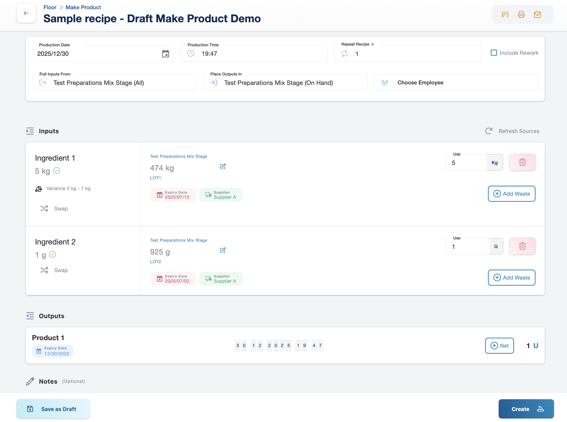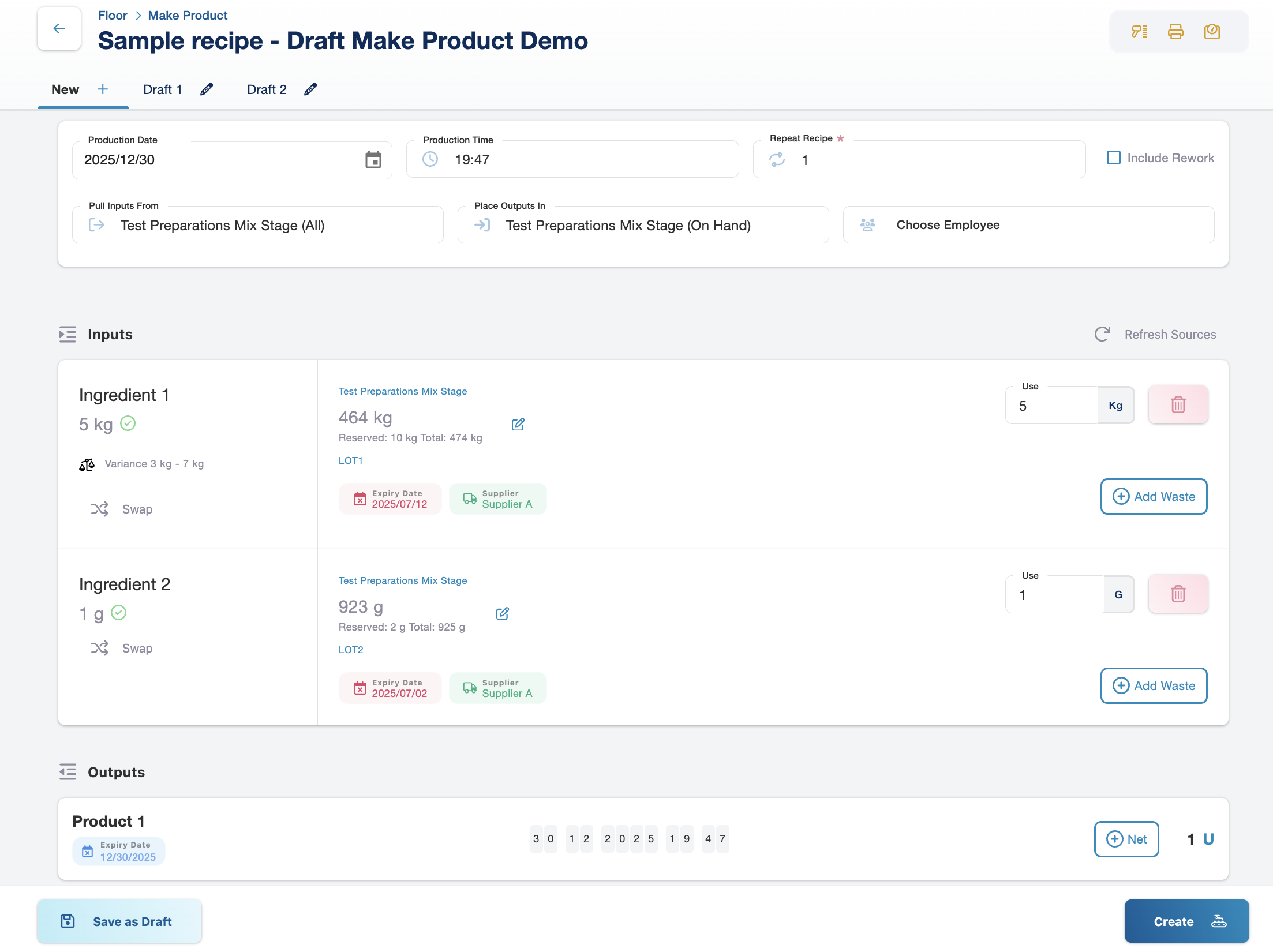 We're excited to introduce Draft Make Product — a powerful new way to manage complex production runs with more flexibility and control. Whether you're running multiple mixers in parallel, preparing batch production in advance, or need time to gather ingredients before finalizing, Draft Mode has you covered.