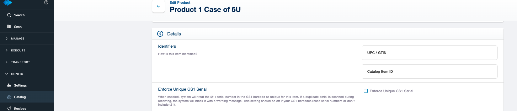 - Enable Enforce Unique GS1 Serial
