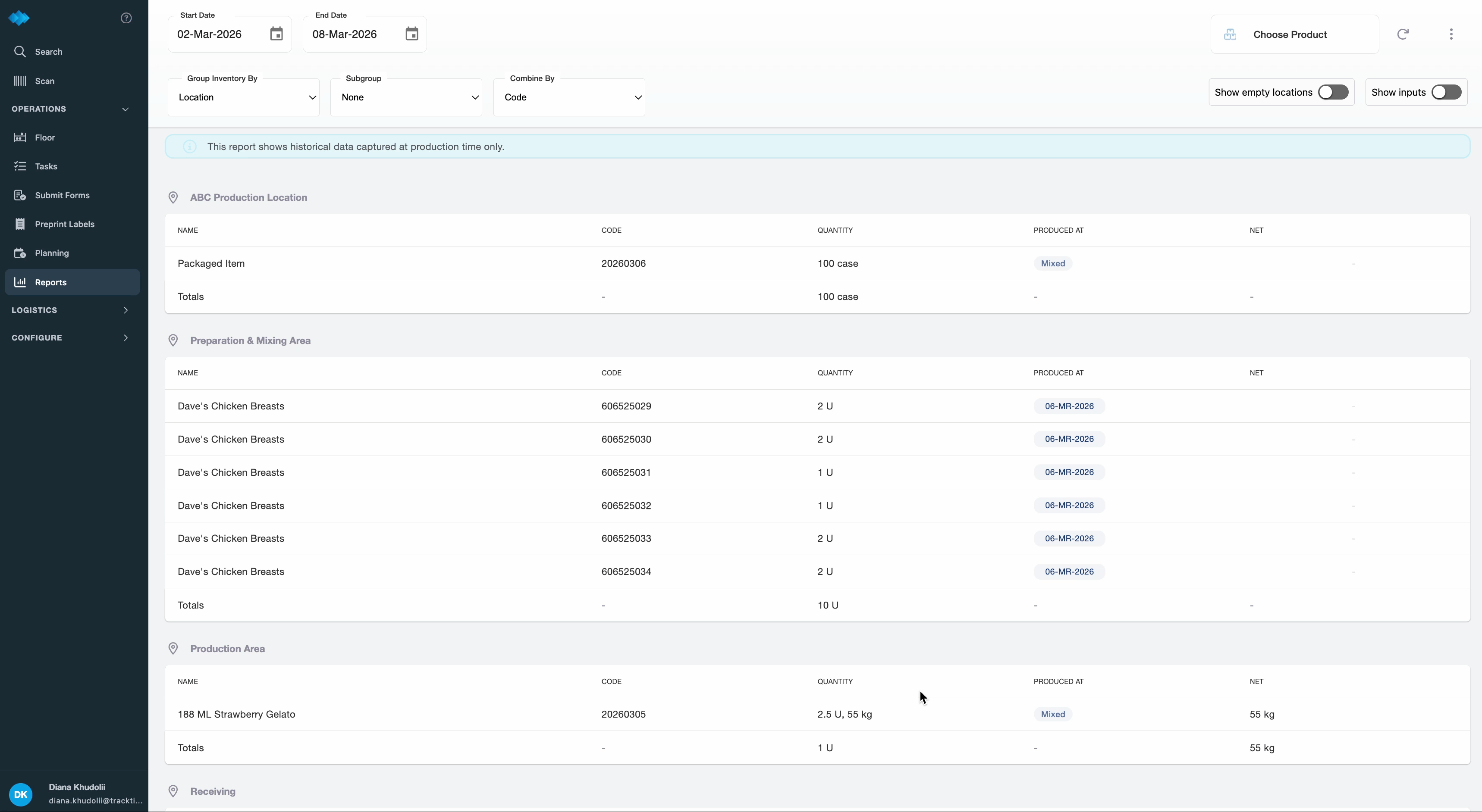 You can now choose to show or hide locations with no inventory in your Inventory, Production, and Receiving Summaries. When shown, empty locations display a clear "No Inventory" label so nothing is left to guesswork.